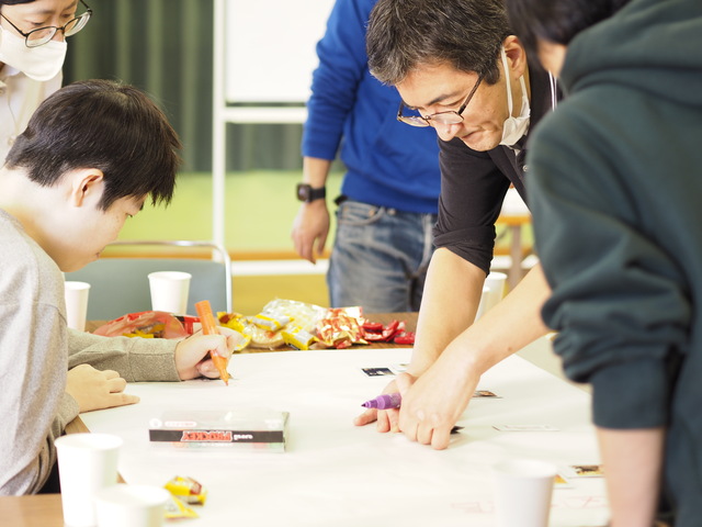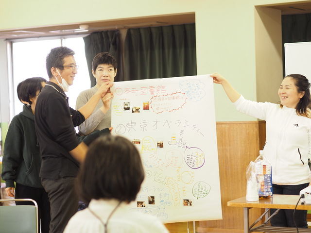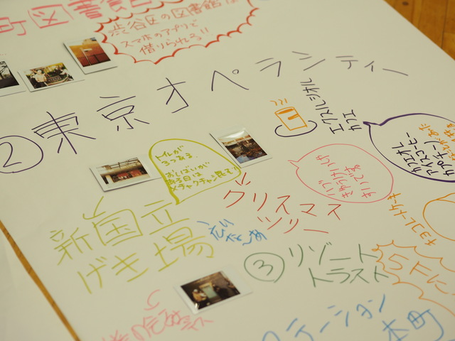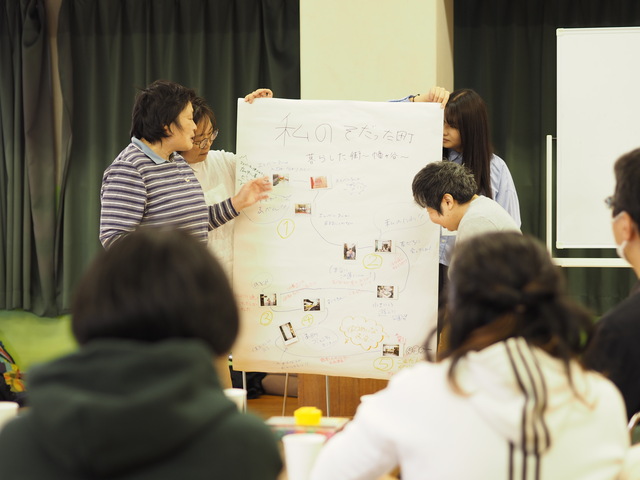 さらに、社会教育会館に戻った後、探索の振り返りとして、参加者とぐっとあっぷガヤメンバーが協働で「気づきマップ」を作成しました。探索中の会話を思い出しながら、それぞれが感じたことや印象に残った場所を自由に書き込みました。個々の視点が集まり、一枚のマップを、まさに“ガヤガヤ”しながらまとめていく過程は、とても興味深いものでした。こうした振り返りを通じて、街歩きが単なる移動ではなく、学びや発見の積み重ねであることも実感しました。