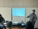 さて、講師は、今回の演出補佐を務めた女優で声優の雨蘭咲木子(うらんさきこ)さんと演出家青柳敦子さんのお二人です。作品のこと、舞台の構造、舞台美術のこと、そして裏話などを聞きました。
