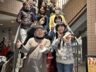 古着のデニムをジョキジョキ切り取って、ぼろい服に見えるよう重ねて張り合わせて作っていきます。ただ、問題はデニムは水分を吸いやすいということです。演技中に汗をかくととても重くなってしまいます。汗っかきの人の衣装は1日2回公演の時にはたまりません。1回目が終わると洗濯機に入れ、すぐにフトン乾燥機やドライヤー、アイロンを駆使して2回目に間に合うように乾燥させるので大騒ぎです。