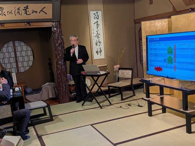 授業の冒頭、まずは料亭 三長の三代目、髙橋千善さんから円山町の歴史についてお話を伺いました。