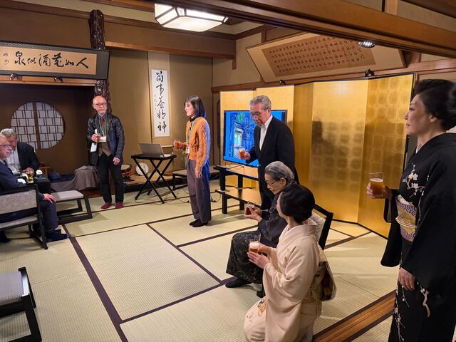 東京音頭はみんなで歌い、参加者たちは美味しいお料理とお酒を楽しみながら、次第に肩書きを忘れ、一人の「遊び手」として場に溶け込んでいきました。